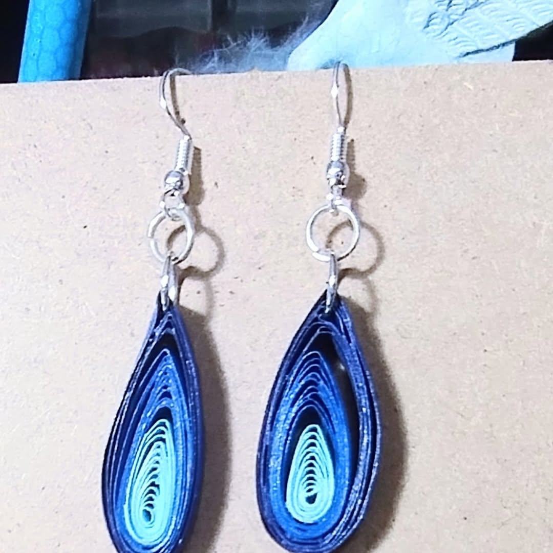 Pendientes hechos en filigrana de papel, con colgantes de abalorios y de cristal de Murano